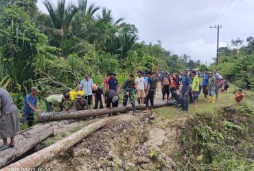 Bangun Jembatan Dari Batang Kelapa, Masyarakat Desa Amabaan Minta Perhatian Pemda Simeulue