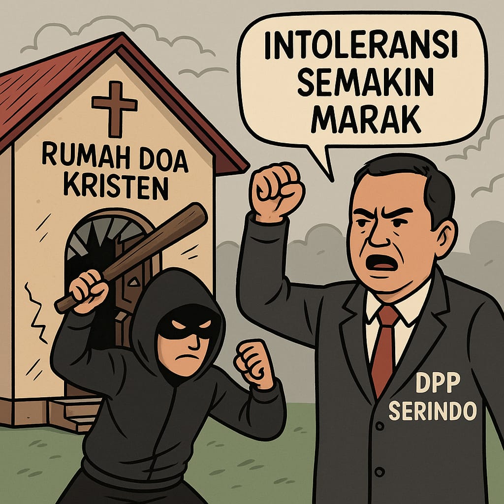 Katacyber.com | Jakarta – Dewan Pimpinan Pusat Serikat Rakyat Indonesia (DPP SERINDO) mengecam keras perusakan rumah doa umat Kristen di Padang Sarai, Koto Tangah, Kota Padang, Sumatera Barat. Aksi tersebut dinilai sebagai bentuk nyata meningkatnya intoleransi beragama yang kian meresahkan publik. Kamis, (31/07/2025).