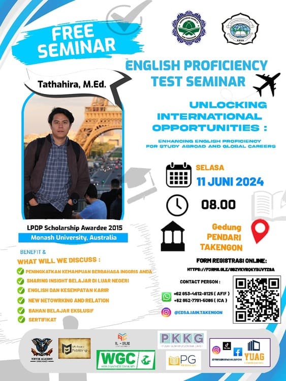Katacyber.com | Aceh Tengah – Setelah sekian lama dinanti, Seminar Bahasa Inggris kembali hadir di Takengon, Kabupaten Aceh Tengah. Seminar ini bertujuan untuk meningkatkan kesadaran masyarakat tentang pentingnya bahasa Inggris di era globalisasi saat ini. Acara bergengsi bertajuk “English Proficiency Test Seminar: Unlocking International Opportunities: Enhancing English Proficiency for Study Abroad and Global Careers” akan diselenggarakan oleh English Department Student Association (EDSA) Kampus IAIN Takengon, bertempat di Gedung Pendari Takengon. Selasa, 11 Juni 2024.