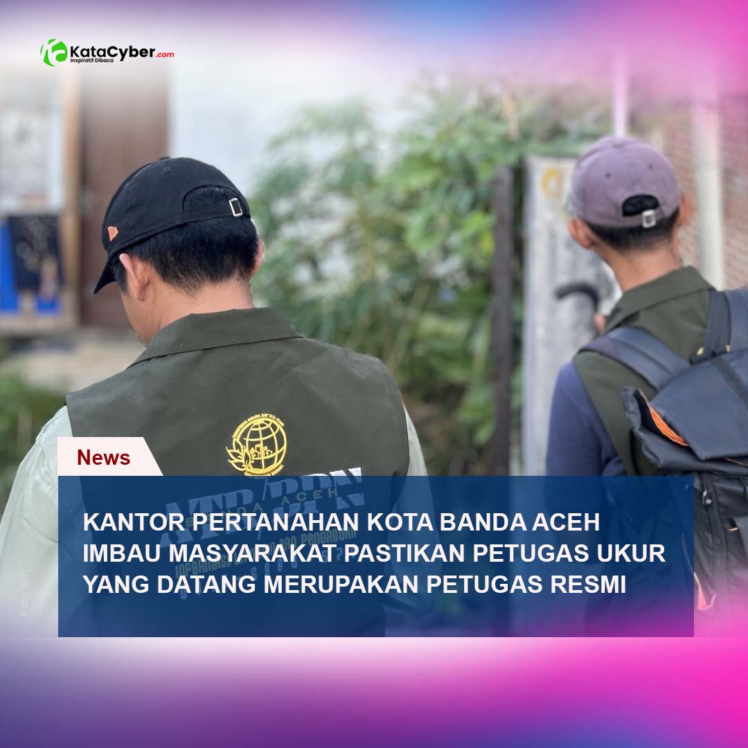 Katacyber.com | Banda Aceh – Kantor Pertanahan Kota Banda Aceh mengimbau masyarakat agar memastikan petugas ukur tanah yang datang ke lapangan merupakan petugas resmi dari Kantor Pertanahan. Imbauan ini disampaikan sebagai bagian dari upaya meningkatkan kehati-hatian masyarakat sekaligus mencegah potensi penyalahgunaan oleh pihak yang mengatasnamakan Kementerian Agraria dan Tata Ruang/Badan Pertanahan Nasional (ATR/BPN).