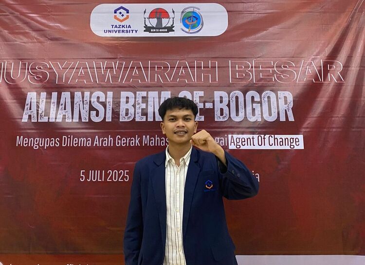 Katacyber.com | Bogor — Aliansi Badan Eksekutif Mahasiswa Se-Bogor resmi menetapkan Indra Mahfuzhi dari Universitas Tazkia sebagai Koordinator Umum BEM Se-Bogor yang baru, dalam forum Musyawarah Besar (Mubes) BEM Se-Bogor yang digelar pada 5 Juli 2025 di Universitas Tazkia, Sentul, Kabupaten Bogor.