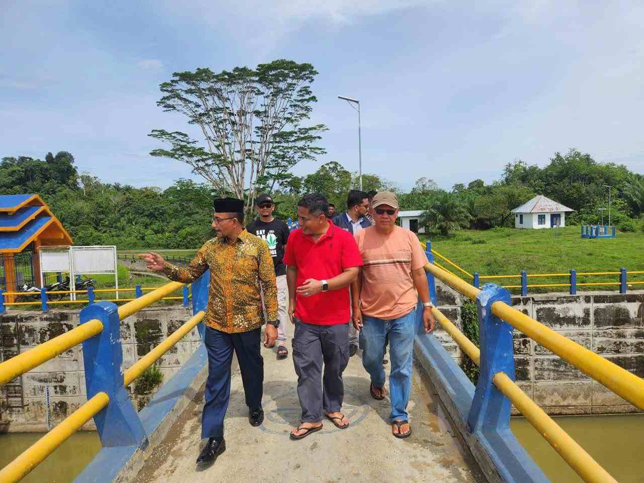 Dalam kunjungan tersebut, Haji Uma bersama Bupati Tarmizi yang di dampingi Kepala Dinas PUPR meninjau progres pembangunan Proyek Strategis Nasional (PSN) jaringan irigasi Lhok Guci di Kecamatan Pante Ceureumen.
